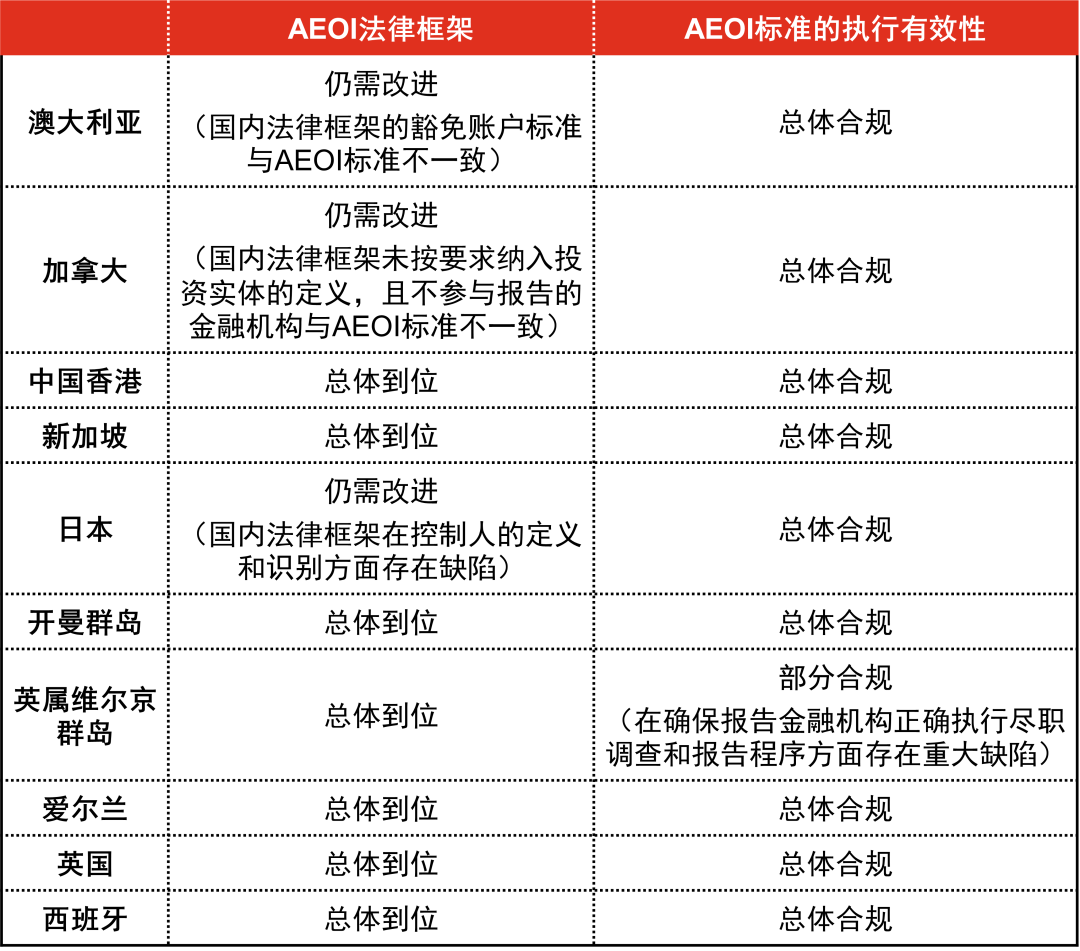注1:已建立完整的国内及国际法律框架,为标准的有效运行提供良好基础,包括建立国内法律框架、金融机构尽职调查及报告程序规则,以及与所有感兴趣的适格合作伙伴建立有效的信息交换关系。