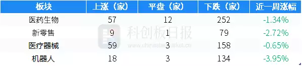 作为对比,本周医药生物、新零售、医疗器械、机器人等领域二级市场表现如下表所示。