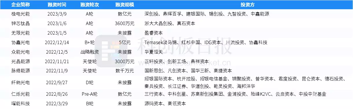 据创投通数据,近一年来,国内钙钛矿产业领域有10家企业获得融资,案例如下表所示。