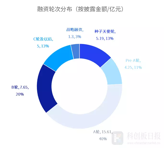 从各轮次投资金额来看,本周的投资事件中,A轮融资事件整体融资数额最多,约为15.61亿元;作为对比,本周二级市场8起首次公开发行总募资额60.03亿元,6起定向增发总募资额78.09亿元。