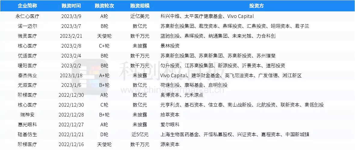 据创投通数据,近一年来,国内有30家植入医疗器械研发企业获得融资,部分案例如下表所示。