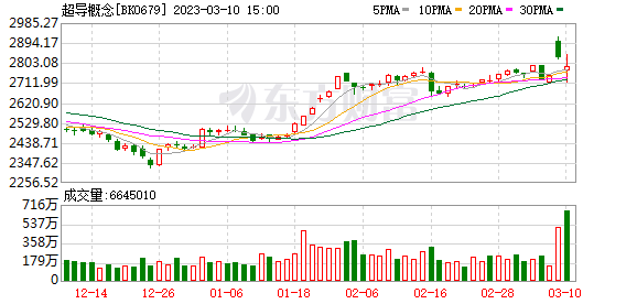市场方面,截至3月10日收盘,超导概念股涨跌分化,百利电气及法尔胜两连板,当日早盘一度跌超6%的永鼎股份快速翻红,收盘上涨3.04%。西部超导收盘跌幅达4.57%,宝胜股份、联创光电等跟跌。