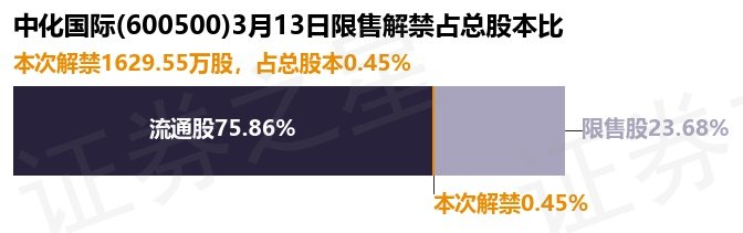 中化国际(600500)1629.55万股限售股将于3月13日解禁上市,占总股本0.45%