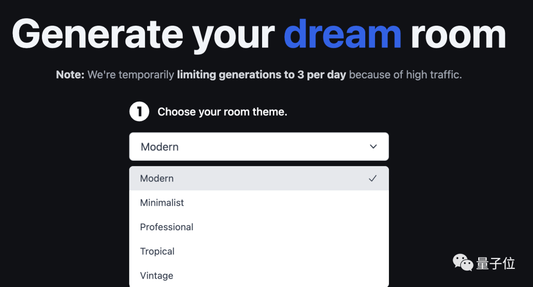 说是共同改造,但其实我要做的,就只用给AI一张图,然后点击两个选项:风格和房间用途。