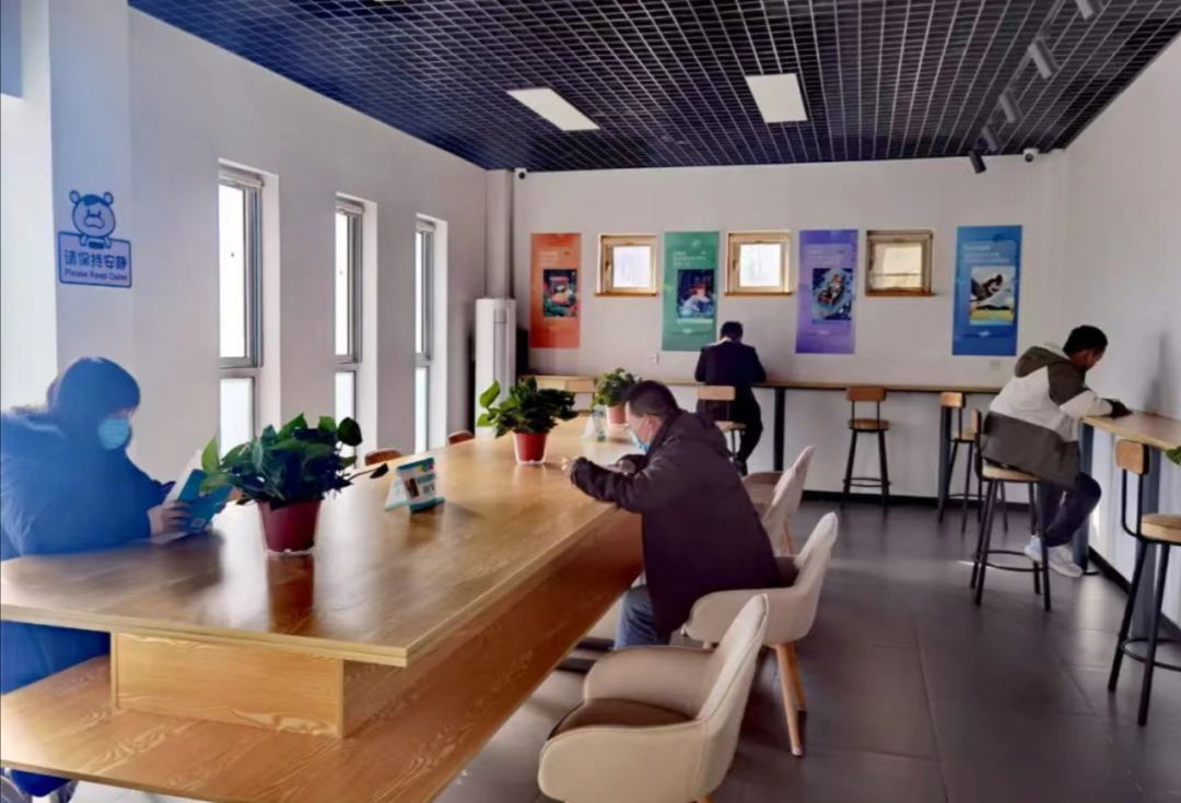 滨水书香阅览室建筑面积128平方米,分为图书摆放区和阅览区,同时开辟专门区域摆放党建学习材料,目前有图书600余册,于每天9点到21点开放,阅览室图书均来自科学城员工和广大市民的爱心捐赠,后续将通过社会捐赠不断丰富图书种类和数量。