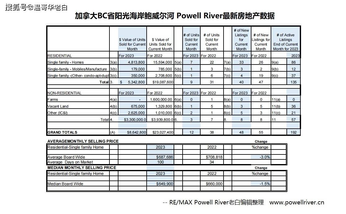 原创 【温哥华老白】BC省阳光海岸鲍威尔河,Powell River2023年2月房产市场创新低
