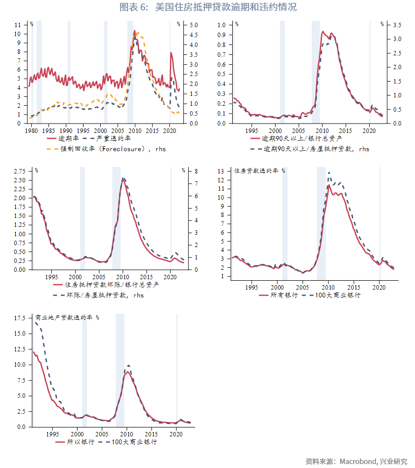 尽管在次贷危机后美国住房抵押贷款和相关MBS规模经历了长时间的收缩,但目前仍是美国金融机构最重要的资产之一,其在金融资产中的占比与股票相当。住房抵押贷款市场健康与否直接关系到美国金融市场稳定。根据MBA和FDIC数据,至2022年第四季度,住房抵押贷款逾期情况仍处于正常水平,逾期、坏账在银行资产中的占比也处于低位。这意味着作为底层资产的住房抵押贷款仍能产生稳定现金流。