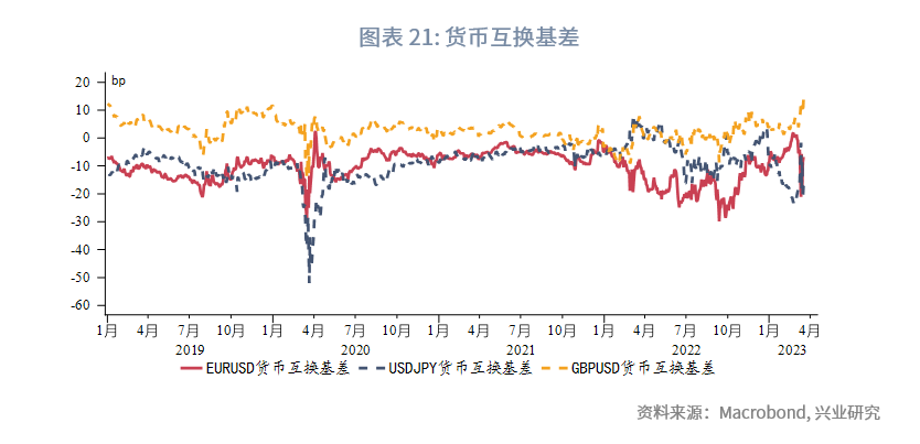 美联储央行流动性互换使用量并未出现显著增长,不过欧央行、日央行近期频繁使用流动性互换引起了市场关注,被视为海外美元流动性收紧的前兆。近期处于风口浪尖的瑞士央行在2022年11月后没有再动用过流动性互换。从货币互换基差看,在3月银行业风波前,离岸美元流动性并未出现明显紧张。近期海外流动性趋紧,但从外汇市场反应来看,并未出现流动性危机,并且经济体间差异明显,未出现系统性问题。