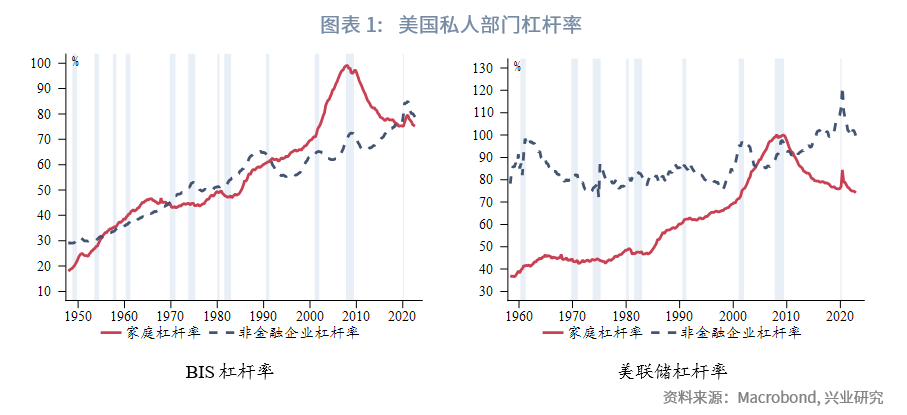 美国宏观杠杆率主要有BIS和美联储两个统计口径,最新数据分别截至2022年第三季度和第四季度,两者数据差异并不明显。次贷危机后美国家庭经历了持续的去杠杆,此后杠杆率整体保持稳定;美国企业杠杆率在次贷危机后逐渐攀升并创下历史新高。2020年美联储和美国财政部联合救市,使得美国企业和家庭在疫情后并未出现激烈的去杠杆,家庭和非金融企业杠杆率与2019年基本相当。BIS还提供美国银行对非金融私人部门信贷统计,至2022年第三季度,银行信贷/GDP比值低于疫情前水平,信贷同比保持扩张。