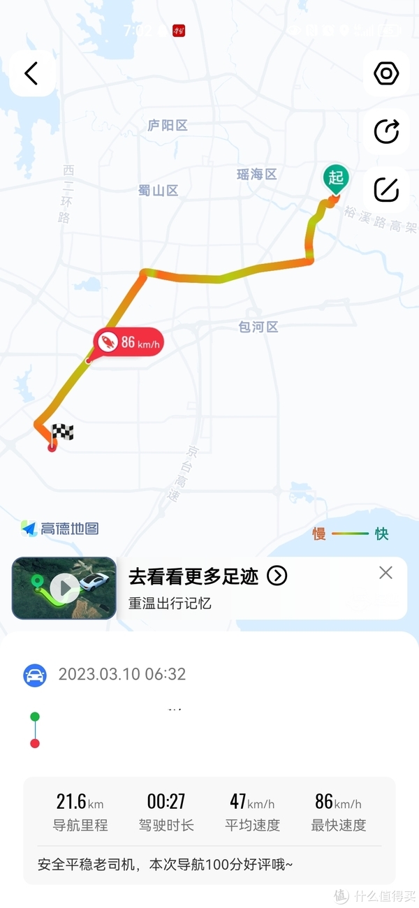 这是我最近两次上班的路程记录,大概22公里,27分钟左右,车速能超过一般路上的平均水平。所以大家不要说我电耗低是因为车速太慢。
