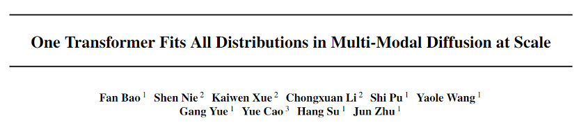 清华大学计算机系朱军教授带领的 TSAIL 团队近期公开的一篇论文《One Transformer Fits All Distributions in Multi-Modal Diffusion at Scale》,率先发布了对多模态生成式模型的一些探索工作,实现了任意模态之间的相互转化。