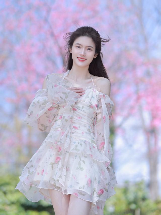 春天很多人会选择清新甜美的碎花裙进行穿搭,这种V领的A字连衣裙,优雅浪漫,女神范十足,V领剪裁增加露肤度,整体气质更加成熟性感了,外面一层飘逸的薄纱设计,唯美浪漫,优雅温柔,真的是美到骨子里去了,又美又甜,飒爽灵动又高级。