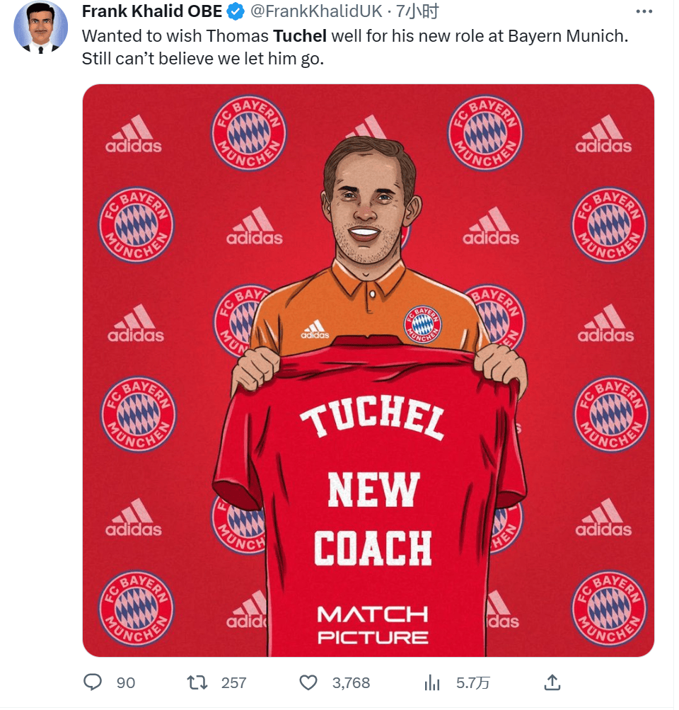 ——“希望图赫尔在拜仁慕尼黑的新岗位上一切顺利,还是不敢相信我们让他下课走了”