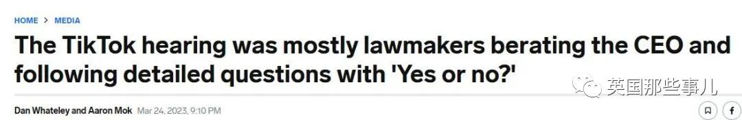 《整个TikTok听证会基本上就是立法者单方面斥责CEO,提一个极其详尽的问题,然后只让他回答是或否》