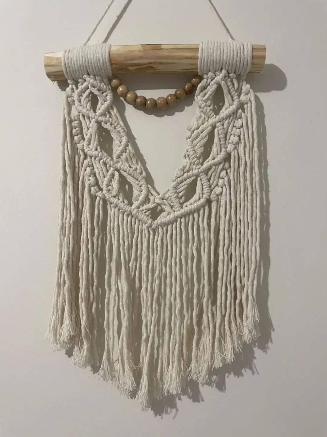 最终我松了口,同意参加上午的编织课。说服我的不是Muhannad,而是房间里的流苏结挂件。我从小就对手工感兴趣,而眼前的流苏结也的确精美。象牙白的棉绳巧妙地缠绕在一段未经加工的树枝上,中间还穿插几颗木头珠子,透着一股朴素空灵的美。