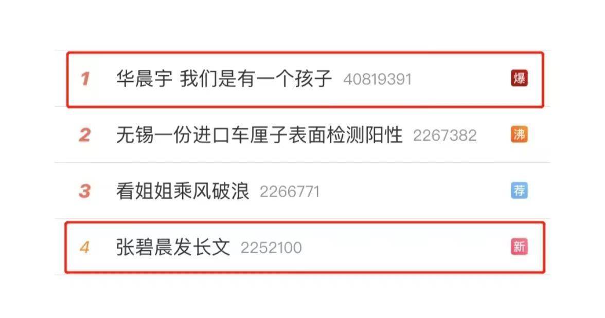 在全民唾弃爽子的时候,华晨宇悄悄宣布自己有了一个孩子,张碧晨紧跟其后发文,两人未婚但有一孩的消息冲上了热搜。