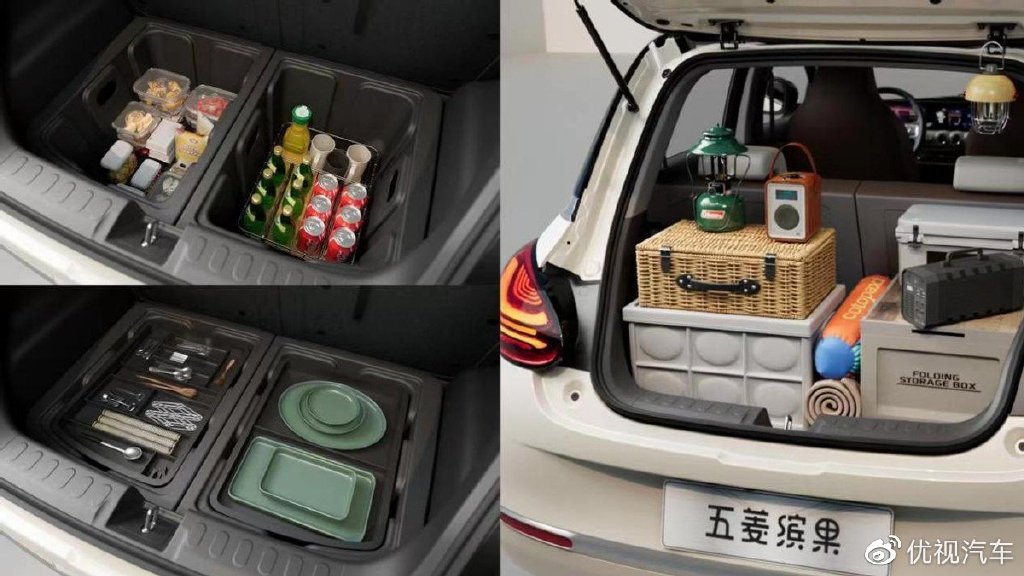 再就是乘坐空间方面,五菱缤果的表现也比宏光MINIEV表现要更好。身高180cm的体验者坐进后排,头部空间还能有2指、腿部空间也有1拳3指,所以应付四个人的日常乘坐它也是一点问题都没有的。更何况,五菱缤果的后备厢内部空间还采用了下沉式设计,而这也让它的尾箱容积能高达790L,足够满足一般的装载需求。