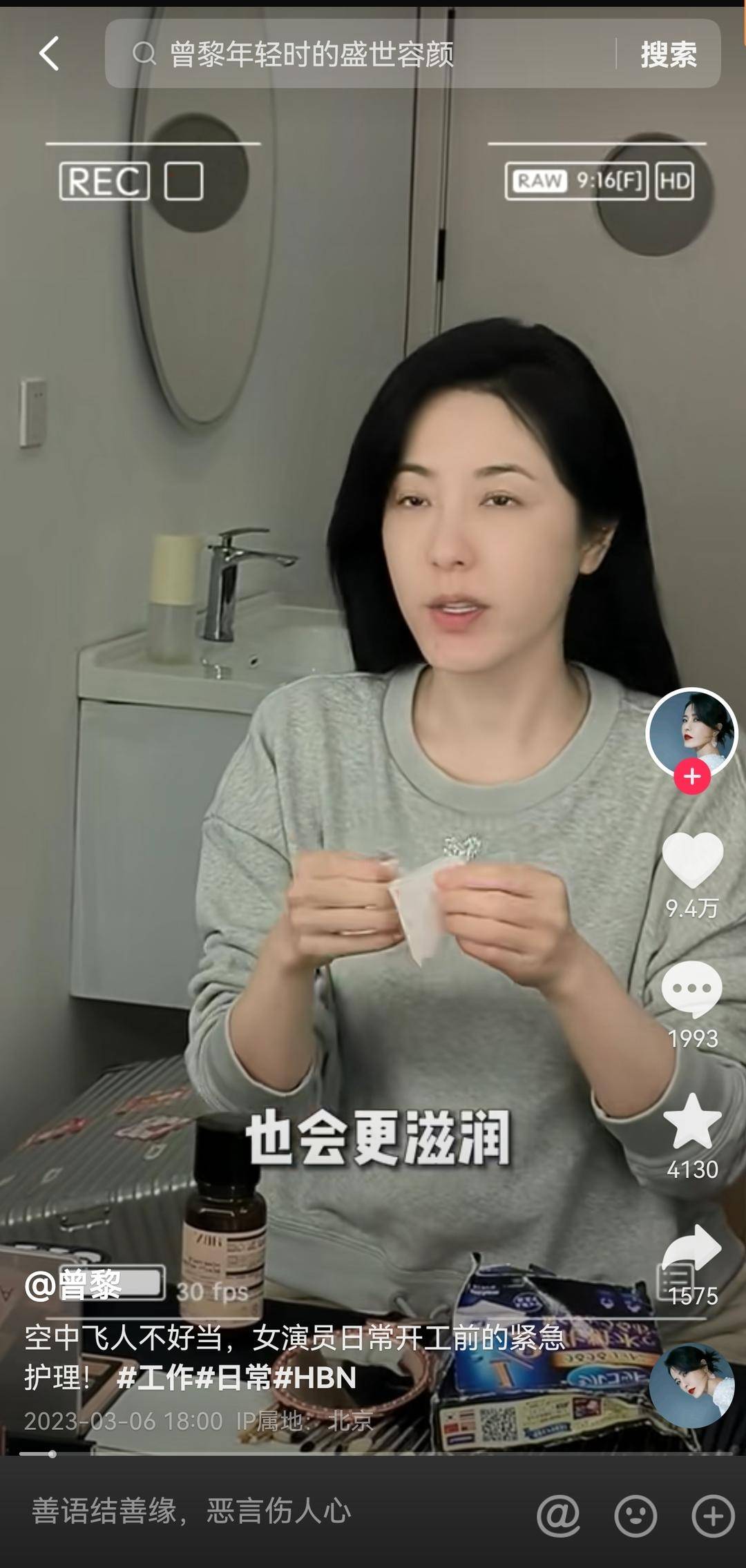 与喊着“9.9元!321上架”、张大大的抓马直播、边跳操边吆喝边甩卖式“闹腾”所不同的是,直播间的精致“慢生活”也拥有不少拥趸。当下有不少中年女明星活跃在直播间,在护肤美容方面颇有心得的她们,比如曾黎、张棪琰拍戏之余打造女明星“下班”沉浸式卸妆的各种生活场景,在直播间安静带货分享护肤新品,拥有不少人气。