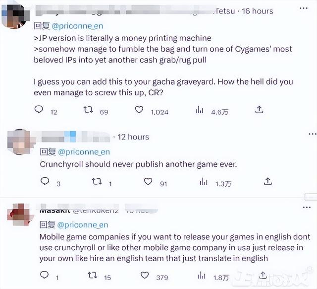 还有玩家吐槽说这游戏在日服就是印钞机,他实在想不明白代理商Crunchyroll是怎么把这么这个躺着都能赚钱的游戏给搞砸的。