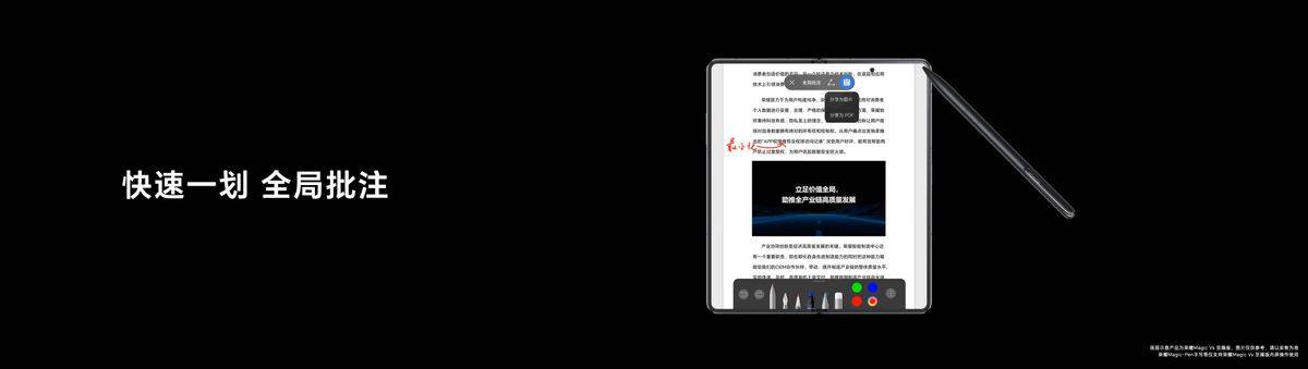 此外,荣耀Magic Vs系列也带来了办公效率的提升,比如荣耀笔记支持全局收藏,网页、图文与视频录屏都可通过三指下滑实现本地收藏,方便随时查找;Magic文本智慧图文识别能力,重要信息不错过,信息隐私数据本地计算,轻松识别手写文字,纸质书也可扫描为电子书。