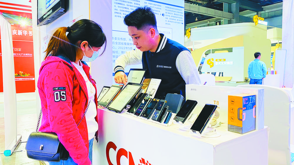 重报都市传媒展台,还展出了多款赋能媒体采编审校全流程工作的高科技设备。本届重庆文博会线下展览面积约3万平方米,共分9大展示区,涵盖“巴渝文化”展区、非遗文化及工艺美术展区、对外文化展区、城市融合展区、智慧文旅展区、当代艺术展区、文化装备体验区等。