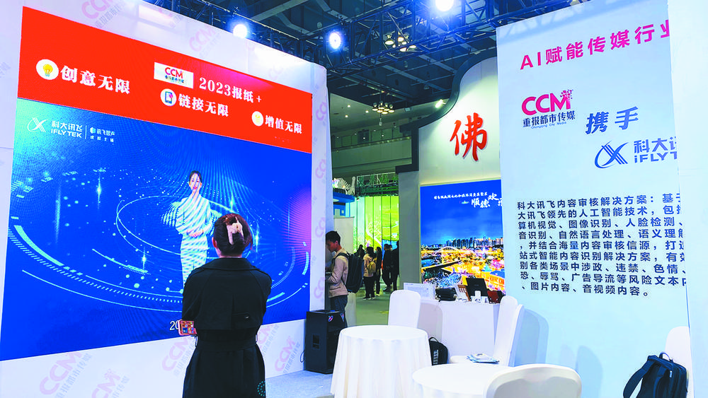 在重报都市传媒展厅,由重报都市传媒集团携手科大讯飞联合打造的AI虚拟人主播,吸引了众多参观者的关注。该款虚拟主播端庄大方,举手投足间极具亲和力,不仔细看,不容易发现其是AI虚拟人。这款虚拟主播由科大讯飞提供人工智能技术合成。
