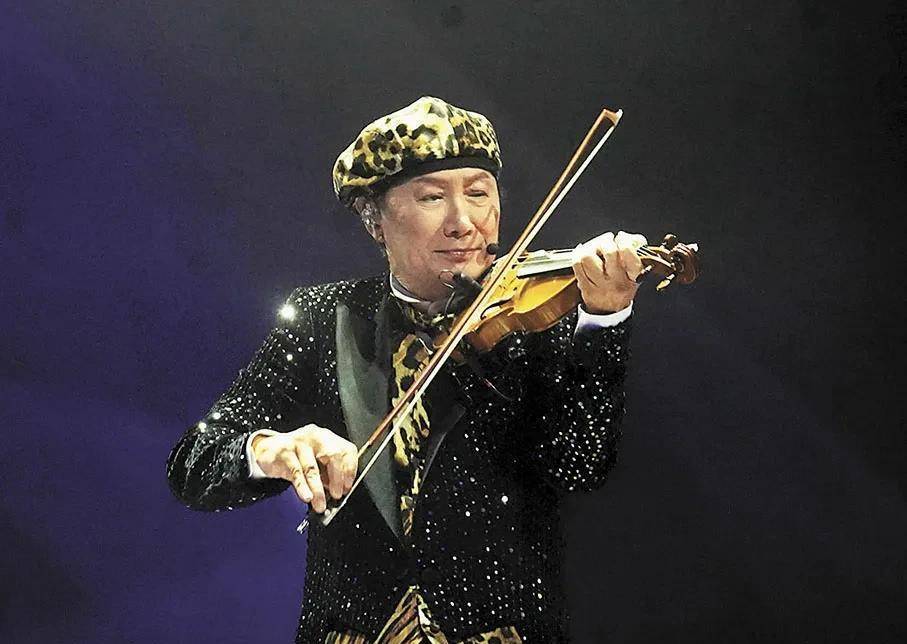 许冠杰拉起小提琴由台中央升上台。