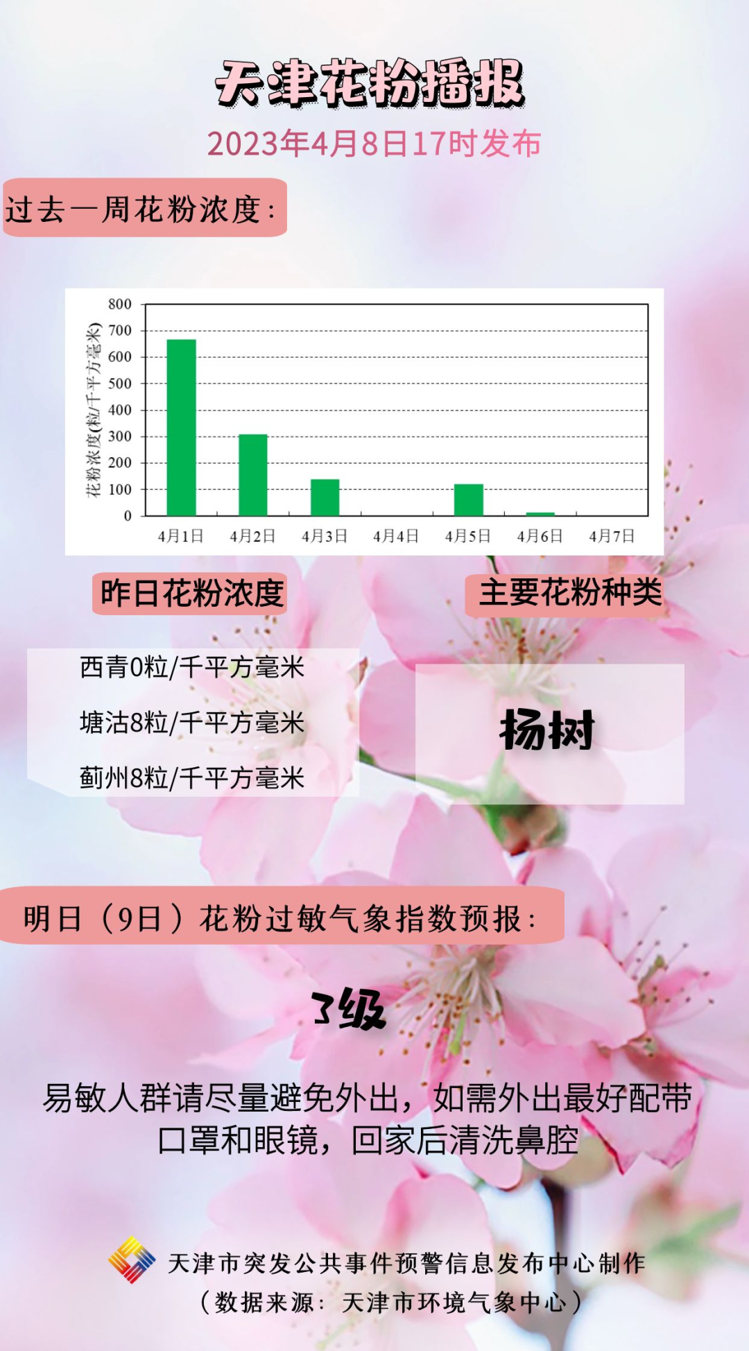 1.花粉浓度较高季节,易过敏人群应尽量减少户外活动,远离花草繁茂区域,上午10点到下午5点是花粉高发时段,敏感人群尽量避开此段时间出门。外出请佩戴口罩、防护镜等防护装置,外出返回后应清洗鼻腔和面部。
