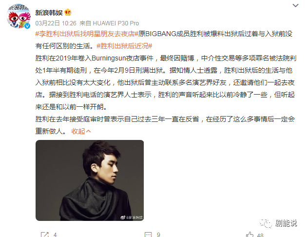 出狱后,据韩媒报道,李胜利的生活和入狱前并无差别。