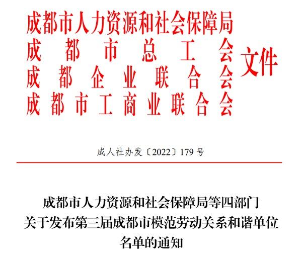 喜报!小亲生活荣获AA级成都市模范劳动关系和谐单位荣誉称号