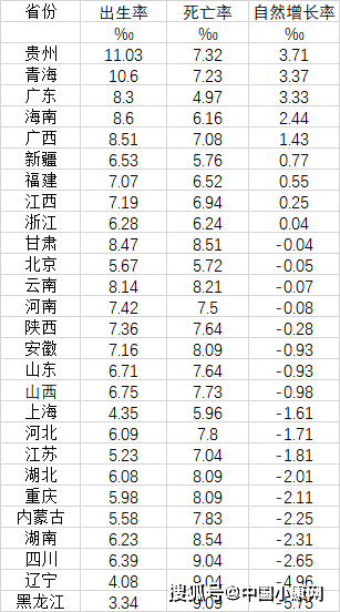 表:27省份2022年人口出生率、死亡率和自然增长率