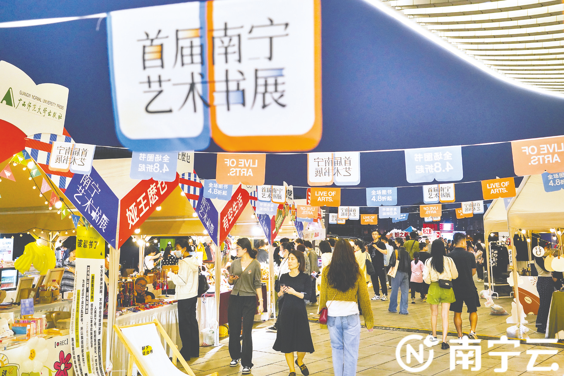 在首届南宁艺术书展上,前来参观的市民穿梭在展览摊位之间,沉浸式体验看、玩、逛、乐交融的文化市集。记者 叶子榕 摄南宁云—南宁日报讯(记者 吴潇)艺术大咖分享会、大型汉服巡游、双语绘本故事会、趣味自然与艺术科普……4月13日,首届南宁艺术书展在广西文化艺术中心启动,此次书展将于4月13—16日每日14时至22时持续开展。