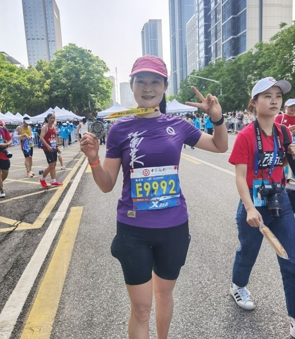4月16日刚刚跑完半马的吴小芳。