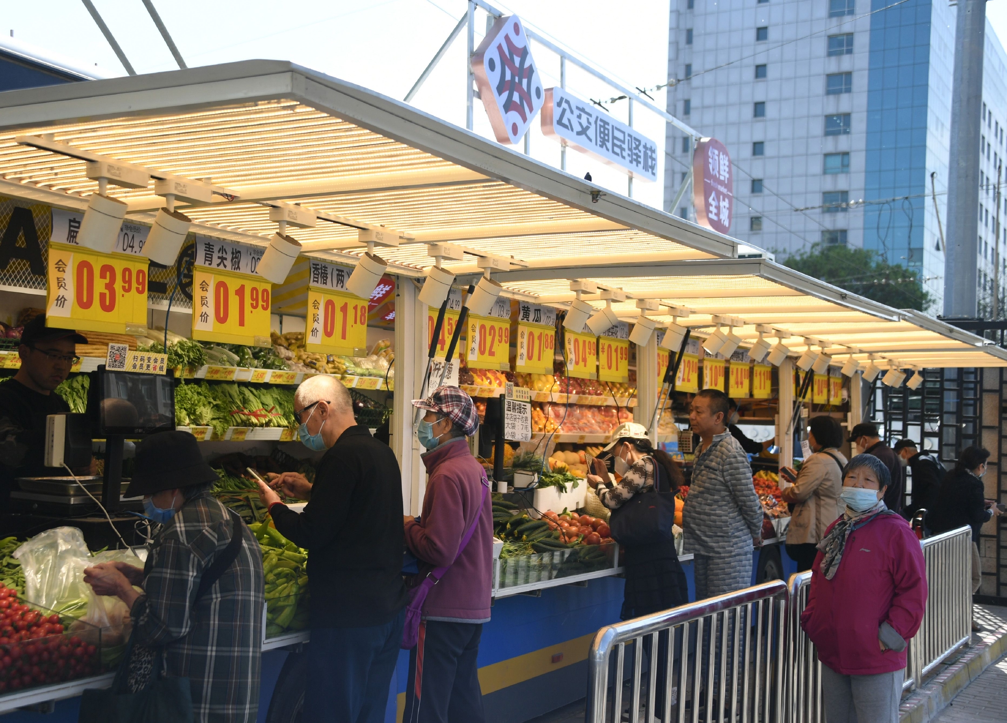 近期,位于北京市朝阳区柳芳公交场站东北角的“公交便民驿栈”投入运营,市民可在“公交便民驿栈”购买蔬菜、水果等农产品。据了解,“公交便民驿栈”项目由北京公交集团主导,通过合理规划,在确保运营不受影响的前提下,在北京市城区内及周边公交场站建设以移动便民车为主的服务栈点。据介绍,“公交便民驿栈”将会陆续在左家庄、草房、崇文门等地的公交场站边角空间设置。