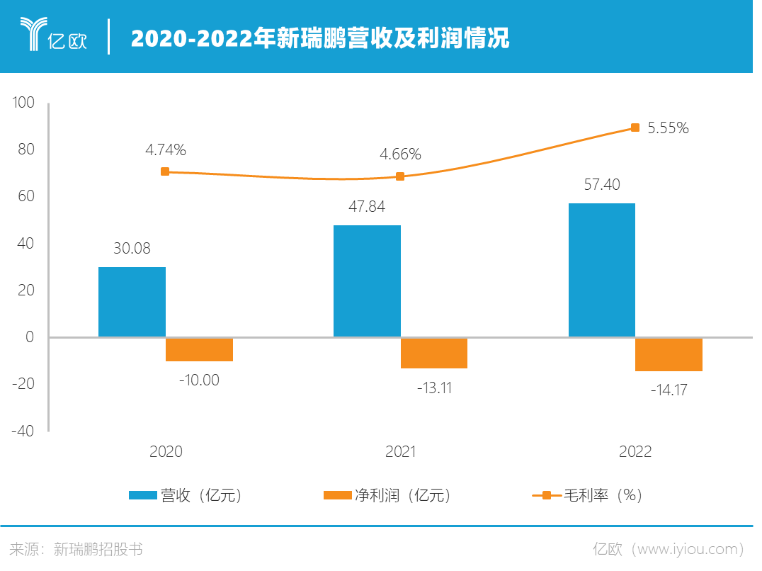 即便近年来营收持续增长,新瑞鹏依然连年亏损且亏损逐渐扩大。招股书显示, 2020-2022年新瑞鹏净亏损分别为10.00亿元、13.11亿元、14.17亿元,三年累计亏损近40亿元;报告期内,其整体毛利率只有5%上下,和此前挂牌新三板时披露的30%相差甚远。