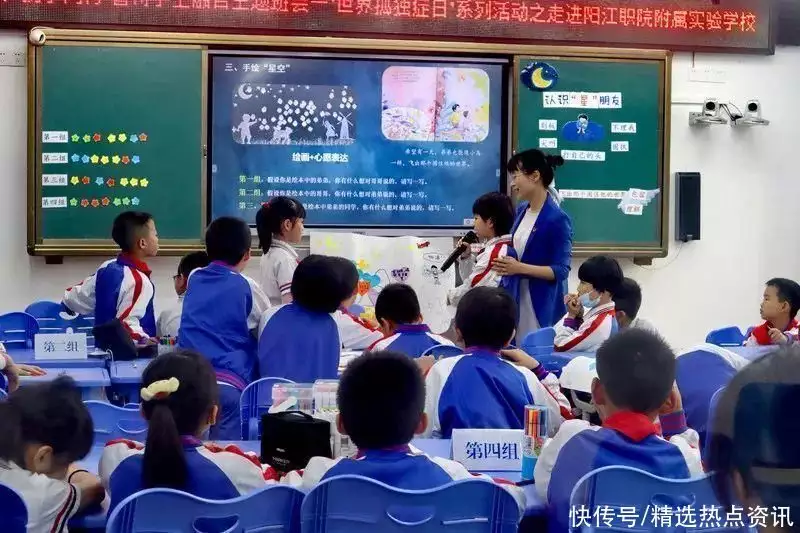 近日,市特殊教育学校党员教师携手四名孤独症学生一同走进阳江职业技术学院附属实验学校,开展“携手星辰——认识‘星’朋友”普特学生融合主题班会课,普特两校学生互动共学,在融洽支持的环境中建立友谊。
