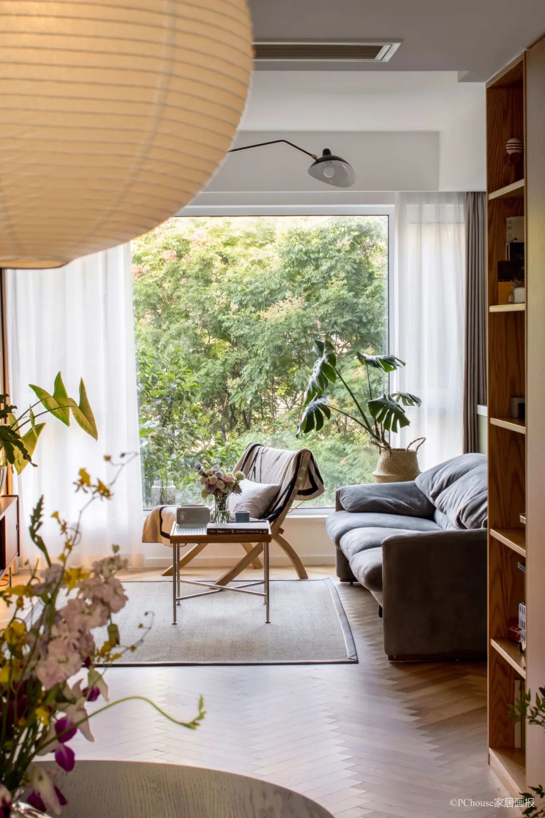 落地大窗,可最大限度引入阳光,打开窗帘,绿意即入眼帘,室内与室外的边界似乎就此消失。