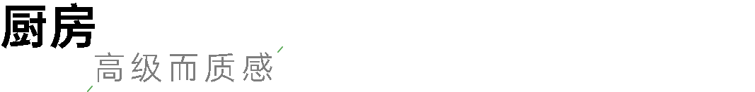 开放式厨房,入户观感不压抑闭塞。中厨及岛台采用白色大理石台面,简约干净。上下柜体则采用复古绿,高级且有质感。