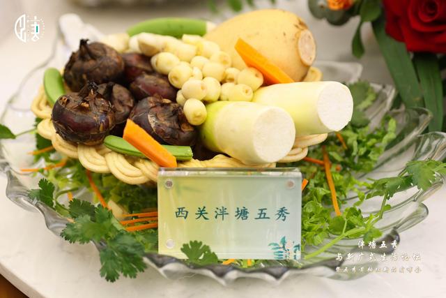 泮塘以盛产“五秀”而闻名。“泮塘五秀”是指莲藕、荸荠(马蹄)、菱角(红菱)、茨菇(慈姑)、茭白(茭白笋、茭笋)五种水生蔬食,为广州著名特产,享誉羊城内外,颇受人们欢迎。