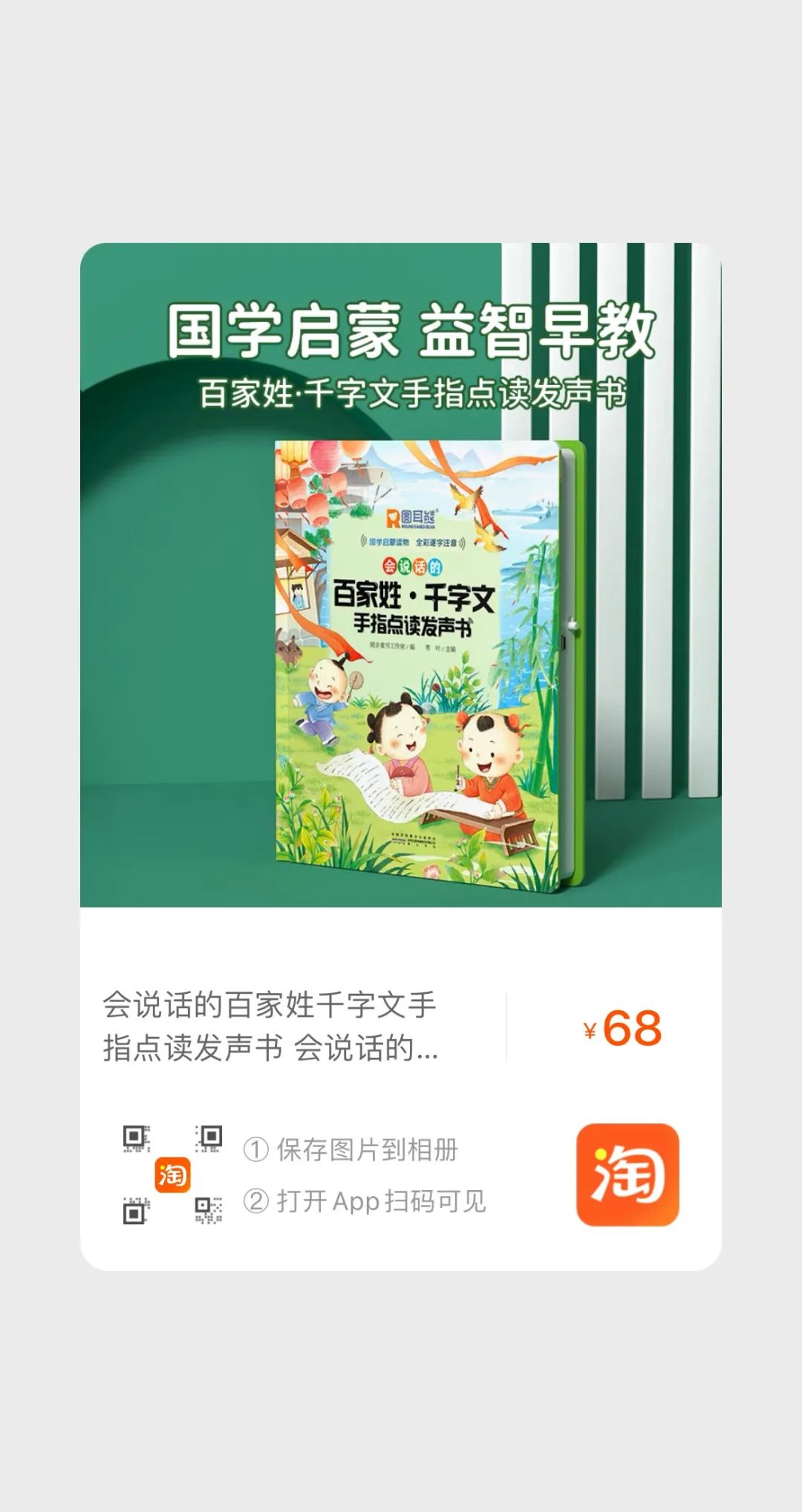 本书取了传统蒙学教育中的经典优秀作品——《百家姓》和《千字文》,分章节呈现。每篇文章既有带汉语拼音注音的原文,也有根据原文内容进行诠释的译文,所有内容都可以进行手指点读发音。本书图文并茂,大字注音,注释言简意赅,点读操作简单,能帮助孩子在轻松有趣的氛围中探索知识,感受学习的乐趣。《百家姓》和《千字文》是中华民族珍贵的文化遗产,它们短小精悍、琅琅上口,千百年来,家喻户晓,不仅可以培养小学生从小热爱中华优秀传统文化,还能提高人文素养和思想品德。