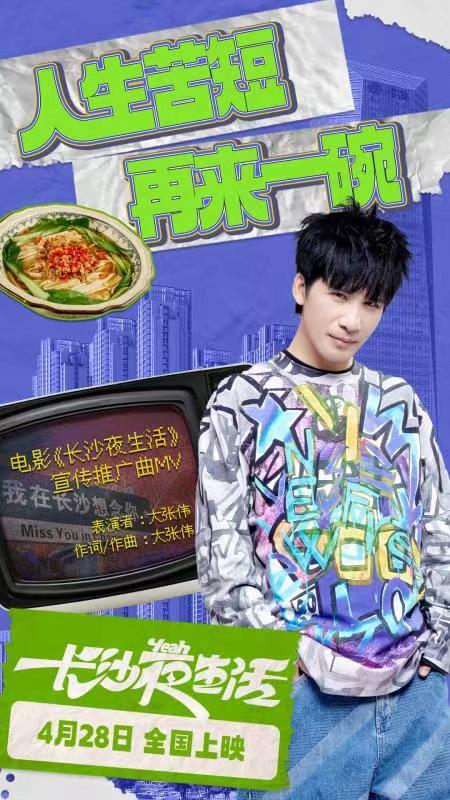 由陈可辛、赵晓时监制,张冀编剧并执导,尹昉、张婧仪、苏岩、吴昊宸、白宇帆、周思羽、吴军、罗钢主演,张艺兴特别出演,廖凡、周冬雨、王栎鑫友情出演的电影《长沙夜生活》今日发布嗦粉推广曲《人生苦短再来一碗》MV。歌曲由大张伟创作并献唱,歌词欢乐轻快,旋律魔性洗脑,让人直呼:“听饿了!”电影现已开启预售,将于4月28日五一假期全国上映。