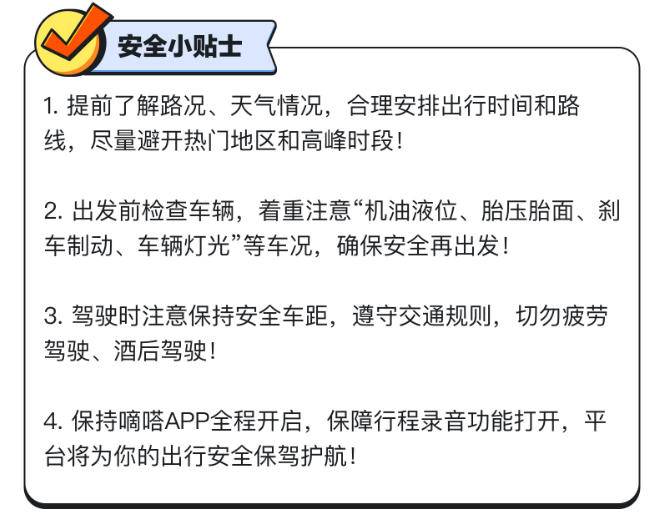 基于顺风车大数据预测,今年五一假期跨城顺风车出发高峰日为4月28日,即假期前一天;5月3日将为跨城顺风出行用户的返程小高峰日,即假期最后一天。同时,预计中短途出行依然是今年五一假期顺风出行的主体。