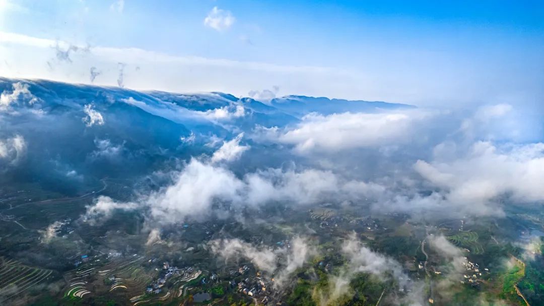 春雨过后,晨光云阵下的北碚区东升村。付佳乐 摄天气