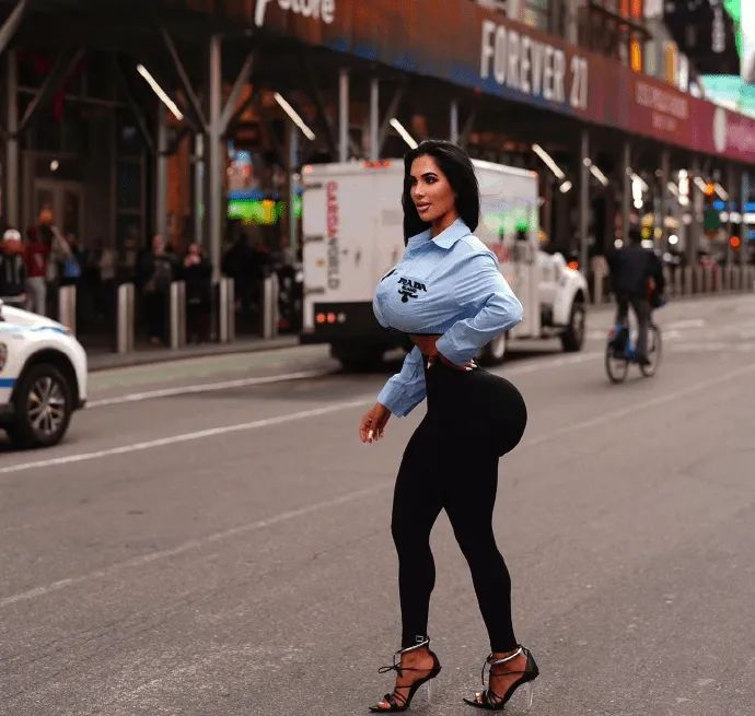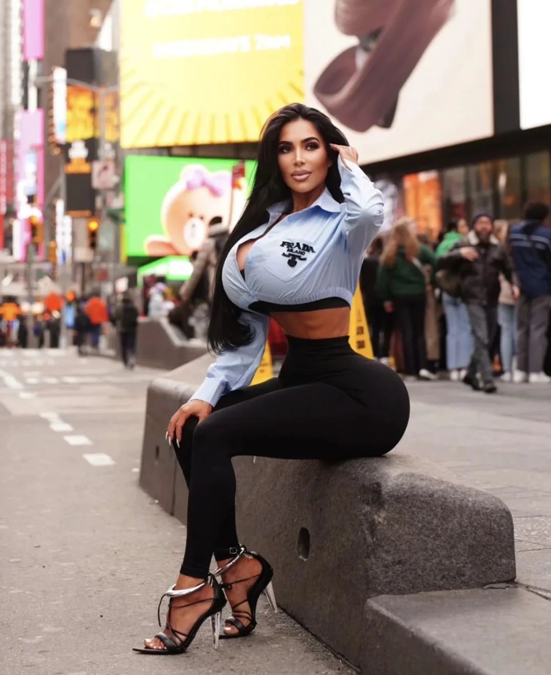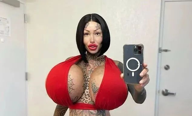 她在丰唇上算是适可而止,但在丰胸、丰臀项目上欲罢不能,最近达成了“43-23-43”的逆天三围,比原版金姐的“38-25-41”身材比例更加夸张。