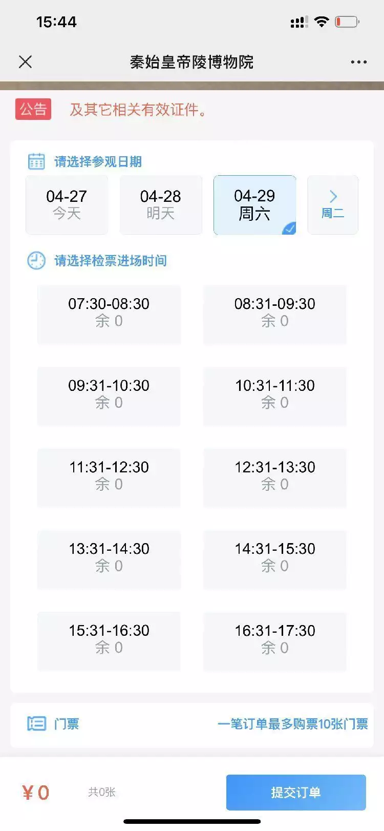 如秦始皇帝陵博物院4月29日至5月2日的门票已无余票。