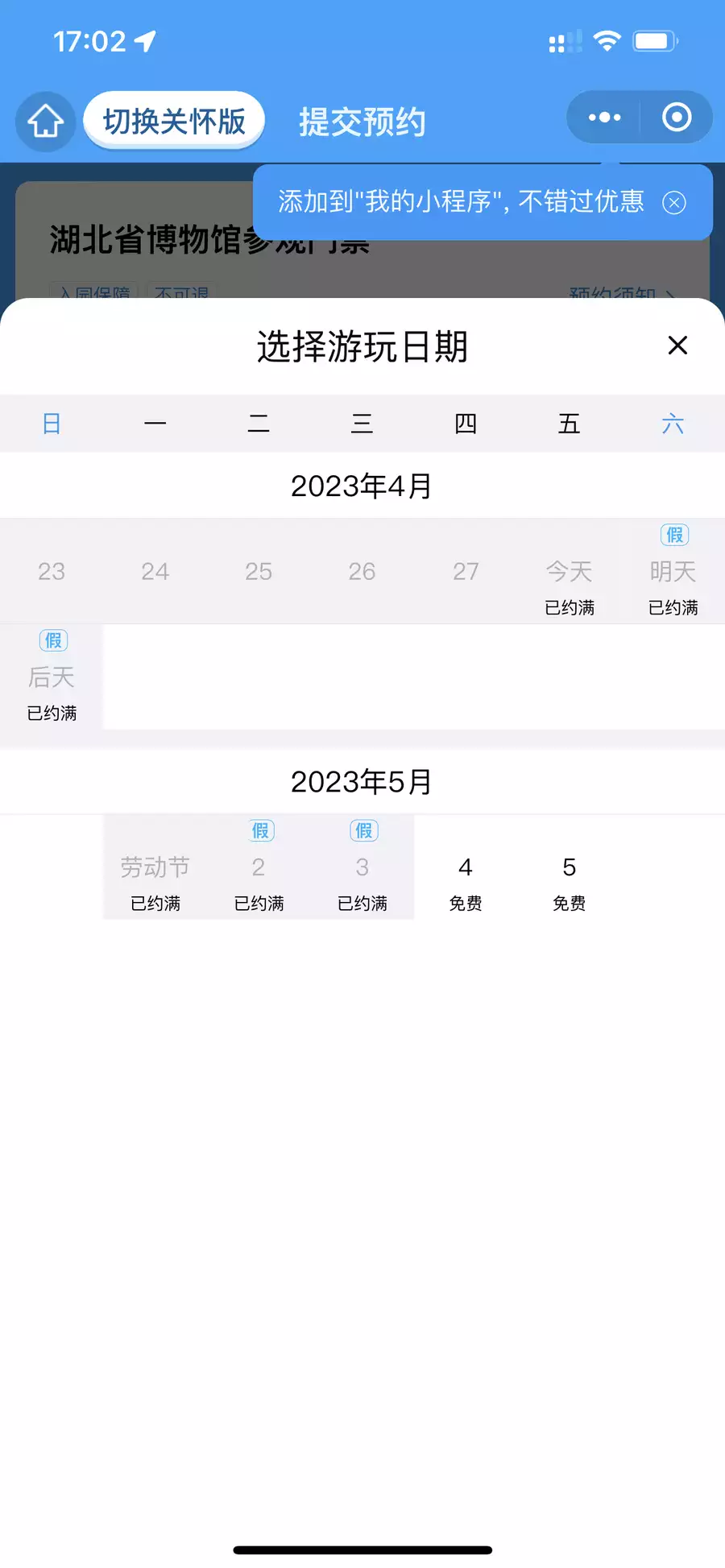 湖南博物院、湖北省博物馆4月29日至5月3日的门票也全部约满。
