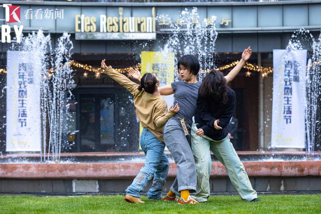 舞剧《摔在地上的世界》是陆家嘴青年戏剧生活节的首场活动,其中融入了当代舞蹈、先锋戏剧、传统戏曲、外语诗歌等。这部剧曾在剧场、美术馆中演绎,如今又来到户外,导演陈欣頔说:“我们一直有愿望让这部舞剧的种子去到不同地点和空间,去松动剧场版本带来的正式感,从更多角度去连接自身的生活体验和表演时空带来的惊喜和可能性。”
