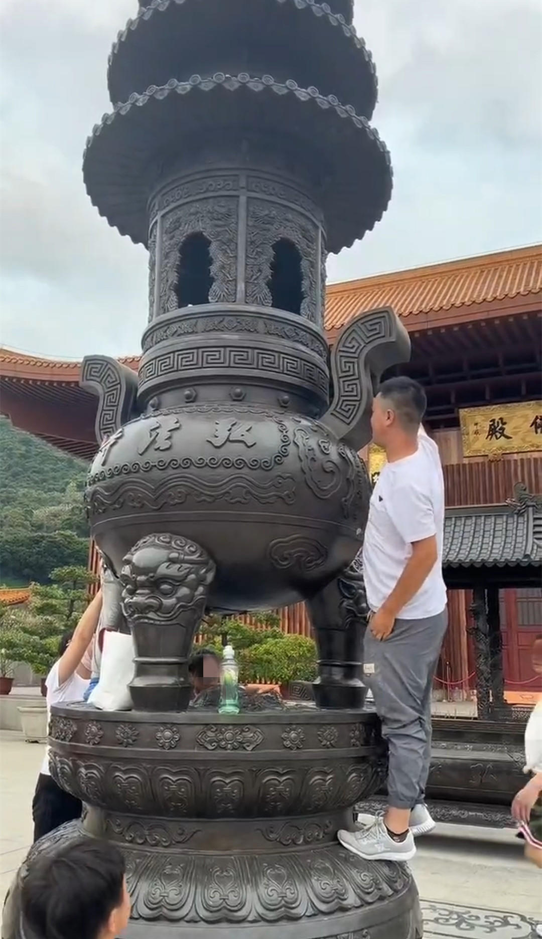 网传深圳有游客爬寺庙大香炉掏硬币给孩子?弘法寺:属实,已接通知正处理