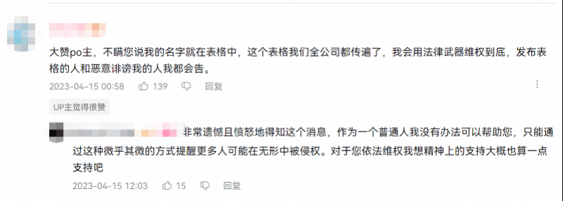 社交平台上, 也有网友表示其个人信息出现在该表格内,且表格在其就职公司内广泛传播,他将采取法律手段维权。