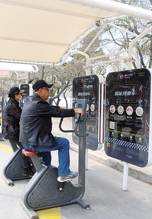 南湖公园的户外智能健身器械深受市民的喜爱。